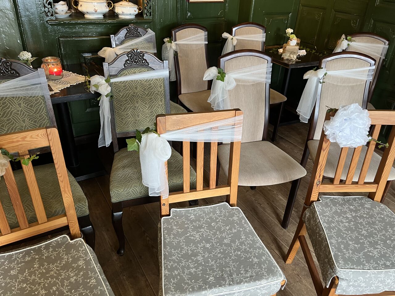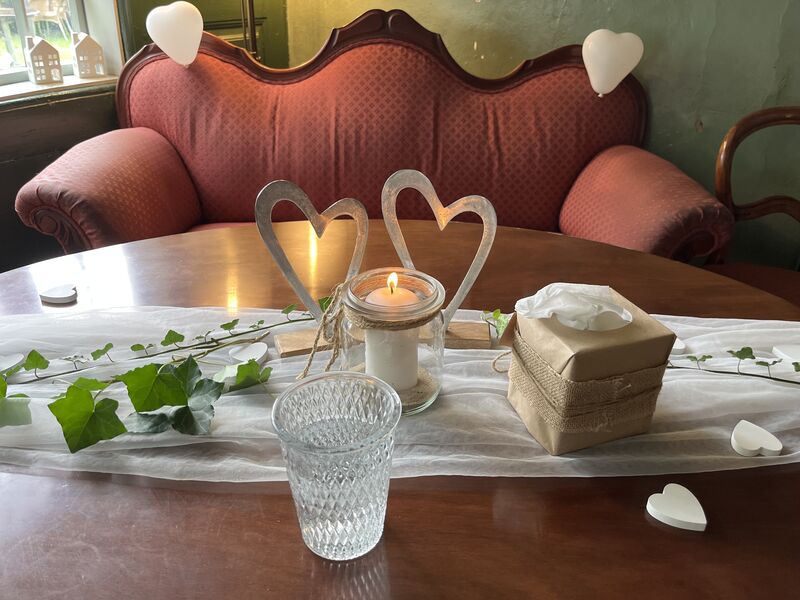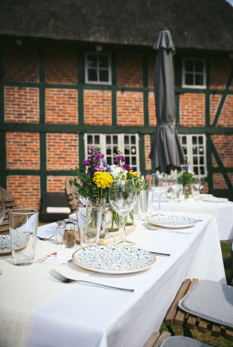 In der Diele wird, von der Schlachterei Hansen aus Bordesholm, noch geräuchert wie früher. Außen rum, in den alten Wohnräumen, befindet sich unser liebevoll eingerichtetes Café!